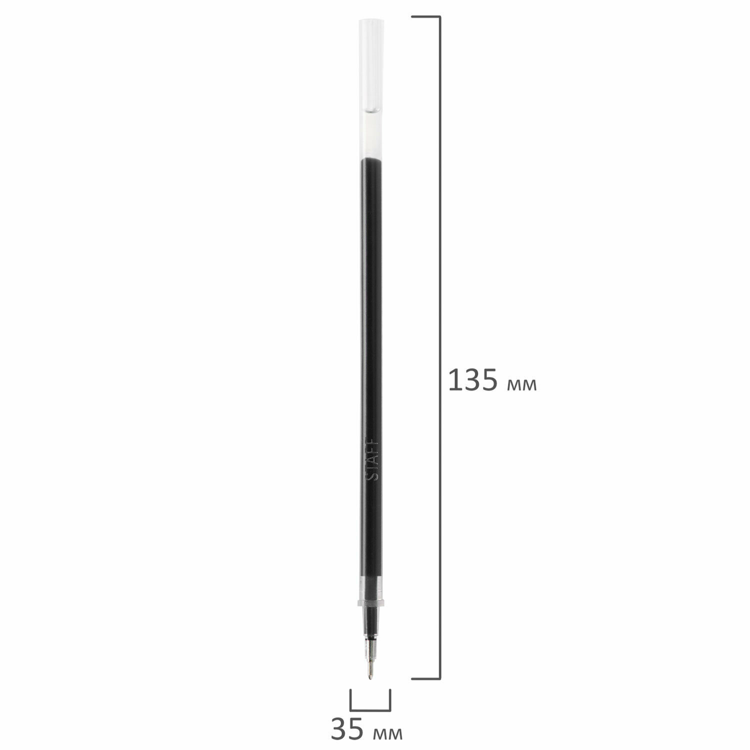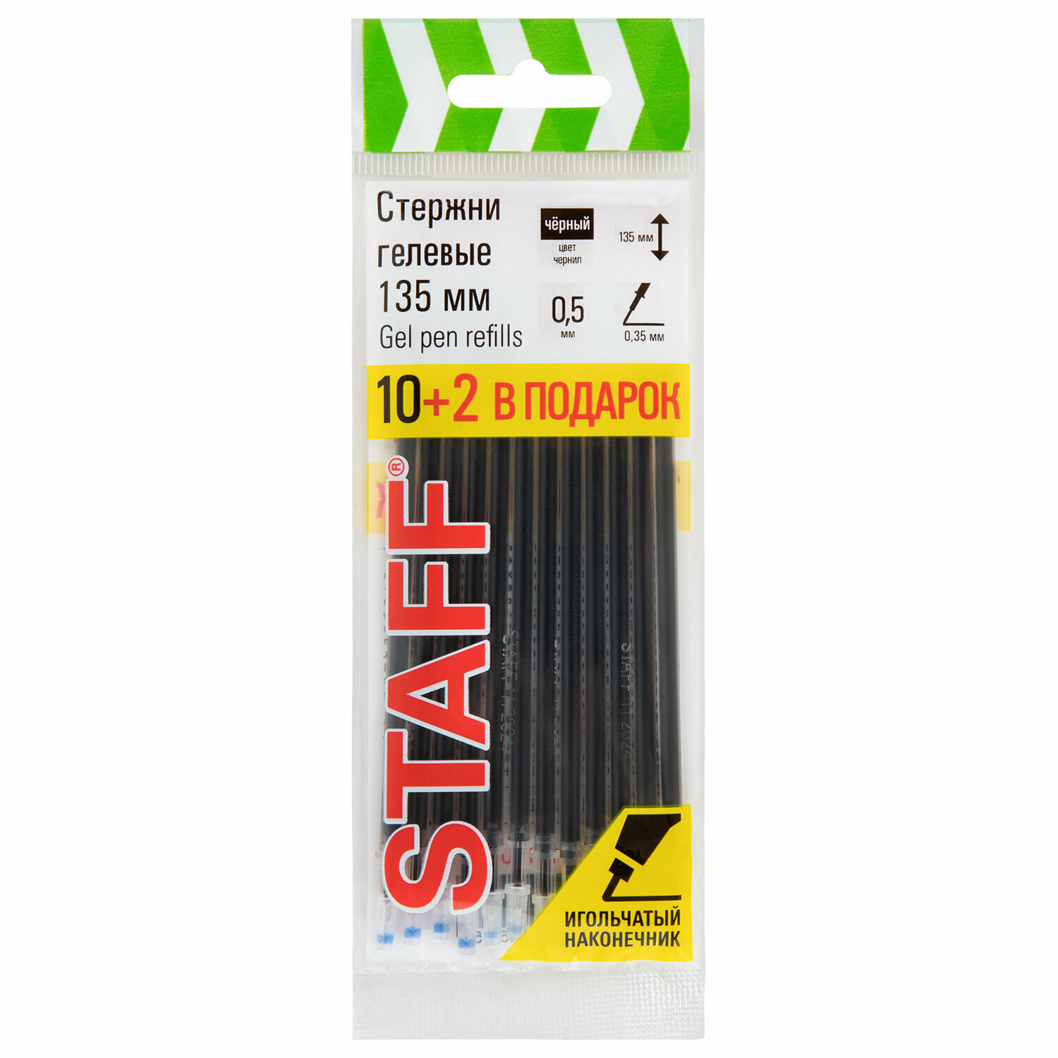Стержни для гелевых ручек черные 135 мм набор 12 штук, игольчатый узел 0,5 мм, линия письма 0,35 мм, Staff, 170411