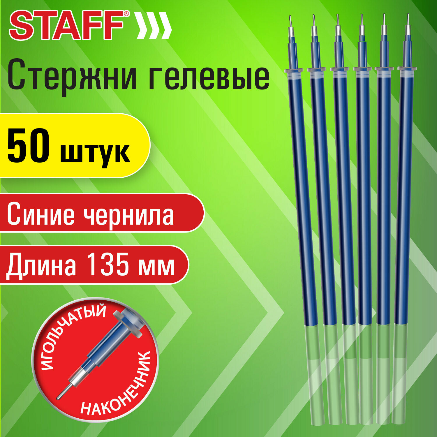 Купить Стержни для гелевых ручек синие 135 мм набор 50 штук, игольчатый узел 0,5 мм, линия письма 0,35 мм, Staff, 170407