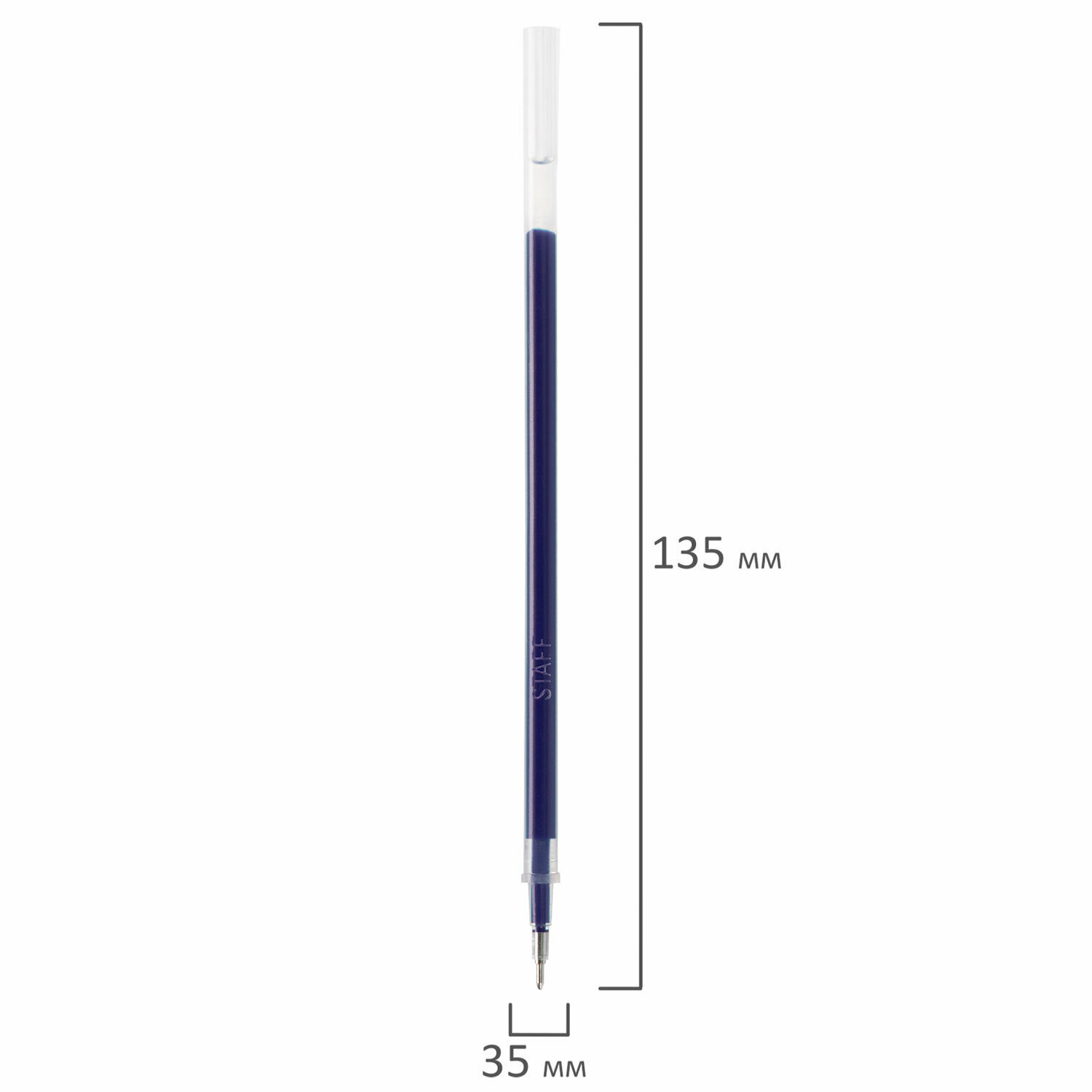 Стержни для гелевых ручек синие 135 мм набор 12 штук, игольчатый узел 0,5 мм, линия письма 0,35 мм, Staff, 170410