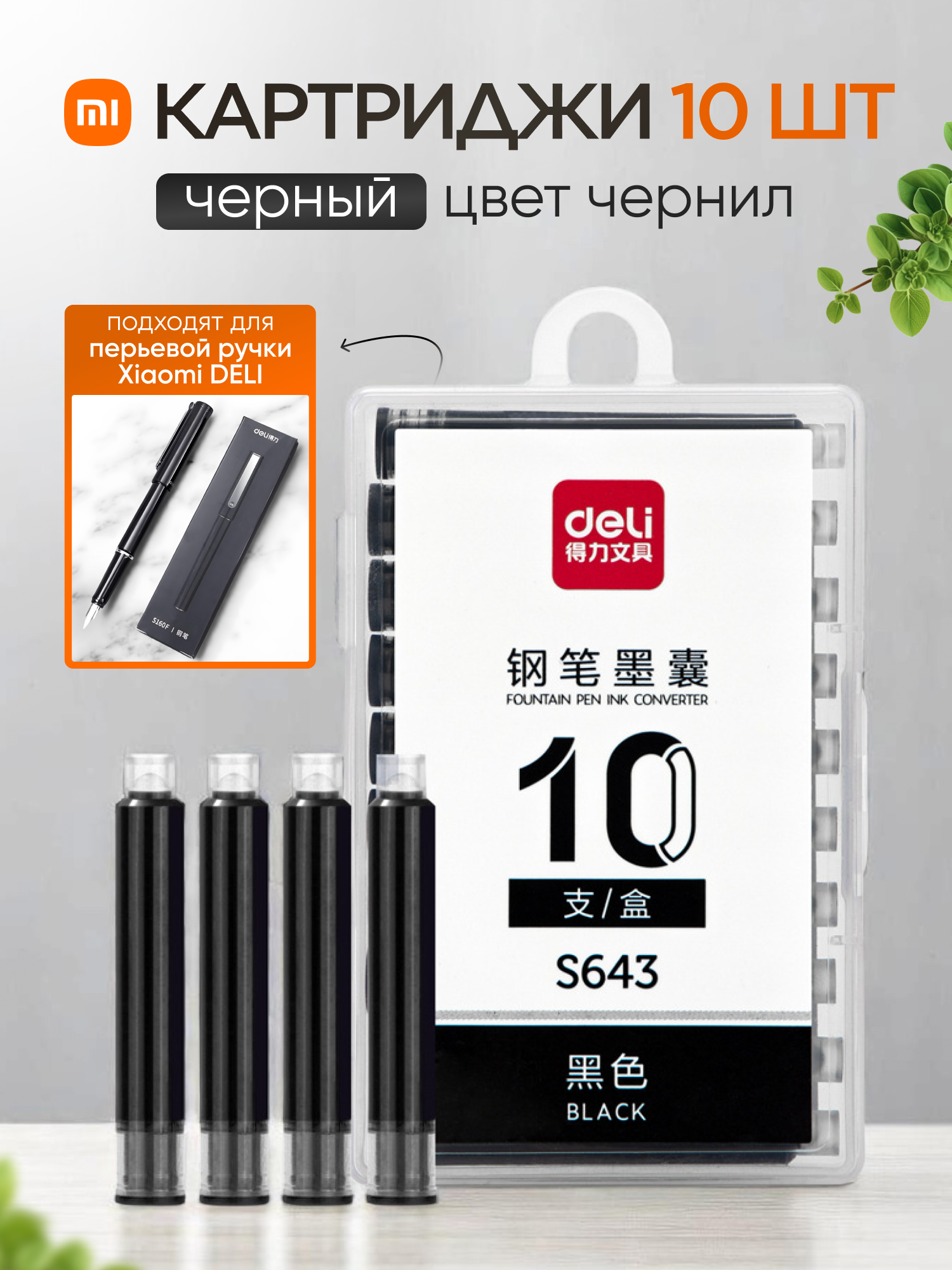 Картриджи для перьевой ручки Xiaomi Deli S160EF (черные, 10 шт.) интересное: