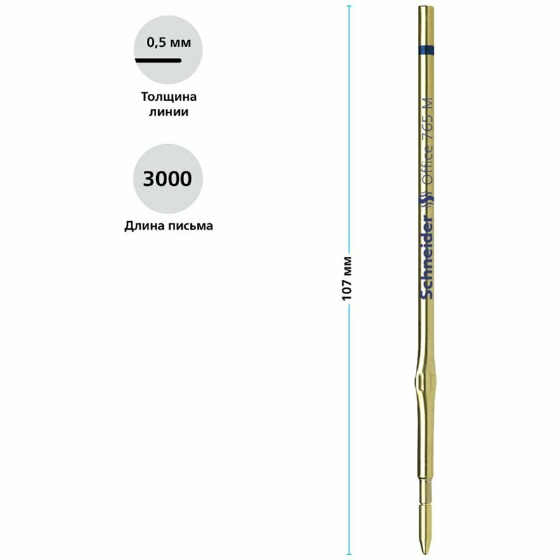 Набор 5 шт. - Стержень шариковый Schneider "Office 765" синий, 107 мм, 1,0 мм 176513 интересное:
