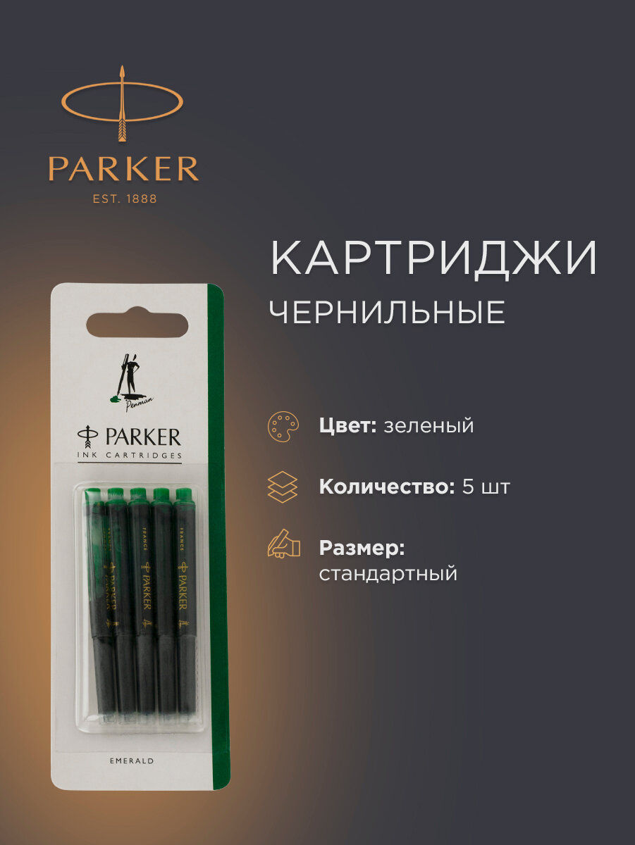Картридж винтажный (чернила) PARKER Penman зеленый (изумрудный) 5 шт в упаковке интересное: