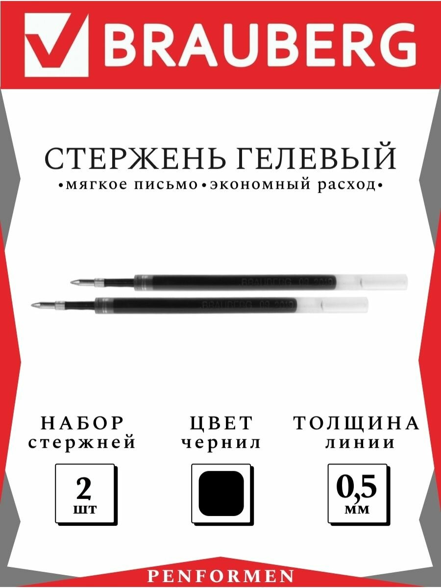 Купить Стержни Гелевые BRAUBERG Черные 0,5 мм, набор 2шт