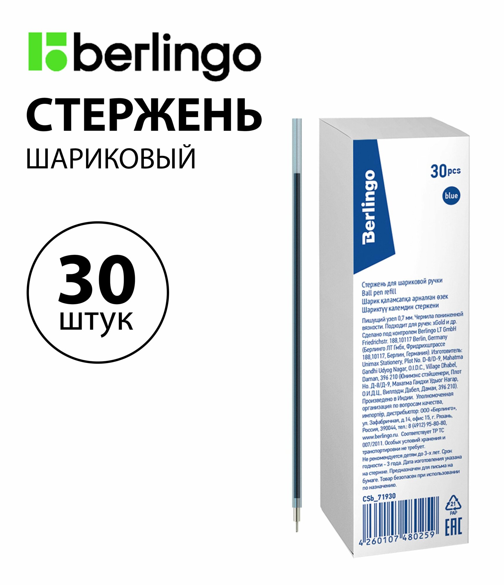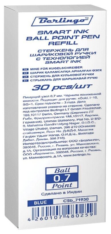 Набор 30 шт. - Стержень шариковый Berlingo "xGold", "SG-1" синий, 139 мм, 0,7 мм CSb_71930 интересное: