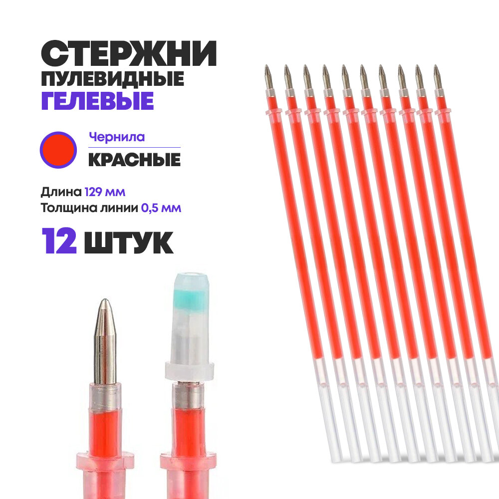 Стержни для ручки гелевые красные 129 мм, 12 шт, MC-Basir, Набор гелевых стержней с наконечником 0,5 мм интересное: