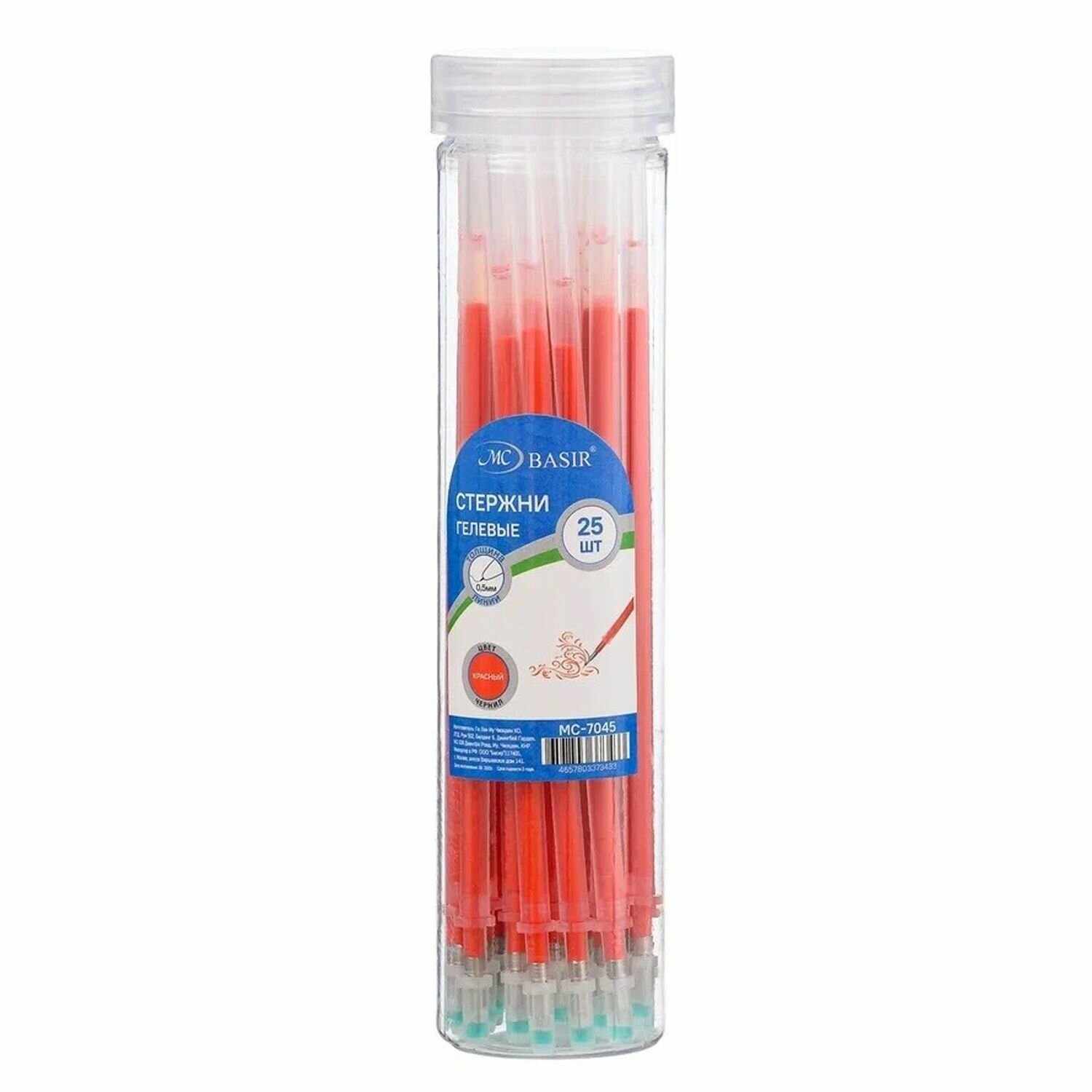 Стержни для ручки гелевые красные 129 мм, 25 шт, MC-Basir, Набор гелевых стержней с наконечником 0,5 мм интересное: