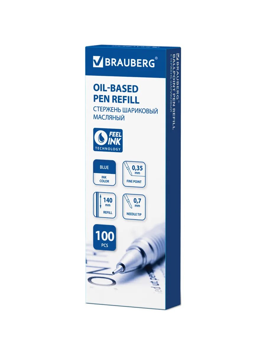 Комплект 50 шт, Стержень шариковый масляный BRAUBERG "Oil Base", 140 мм, синий, игольчатый узел 0.7 мм, линия письма 0.35 мм, 170221