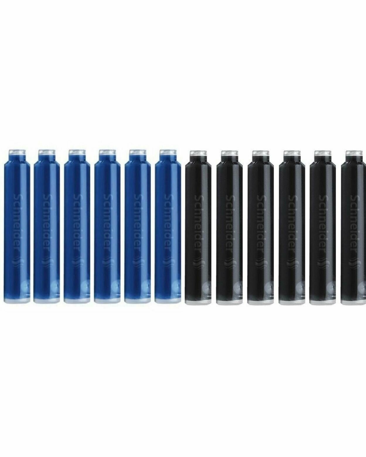 Купить Картриджи с чернилами для перьевой ручки / Баллончики для перьевой ручки, цвет синий+черный, SCHNEIDER 38 мм, 2 упаковки по 6 штук