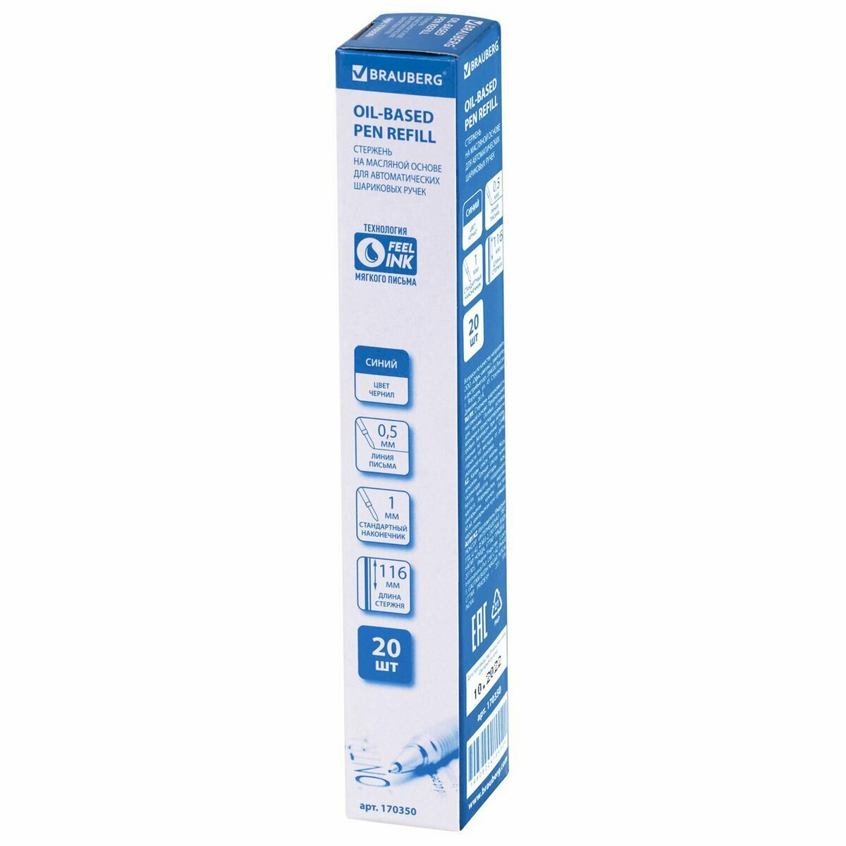 Стержень шариковый масляный Brauberg, 116мм (синий, 0.5мм, тип Cross, металлический) (170350), 20шт. интересное: