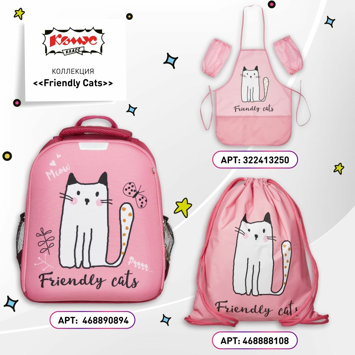 Купить Мешок для обуви Комус Класс Friendly cats, 360x470 мм, 1 отделение