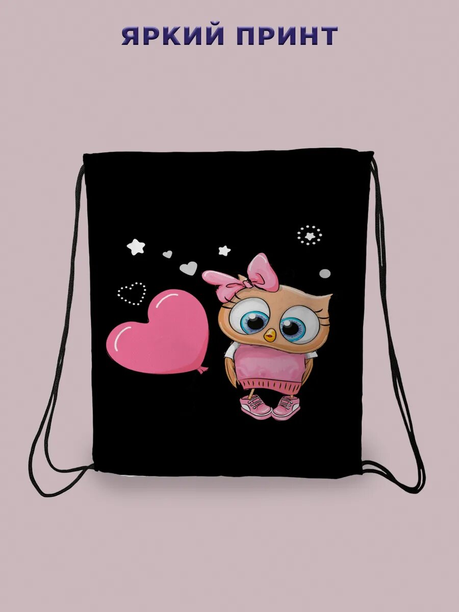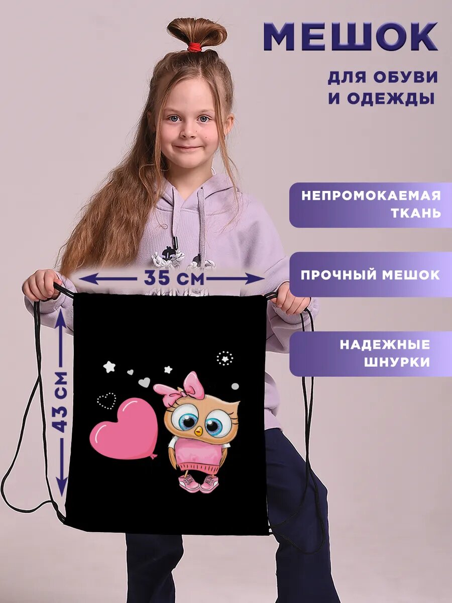 Мешок для обуви сменки большой в школу с принтом совушка интересное:
