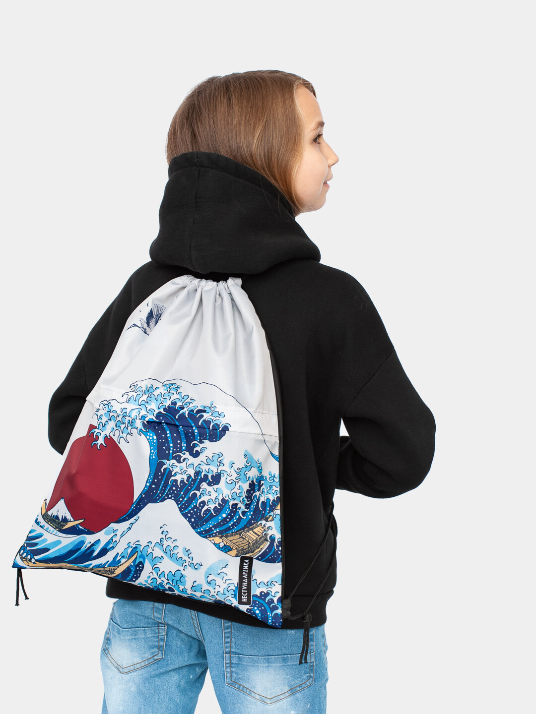 Сумка мешок для сменной обуви и вещей с карманом Волна в Канагаве интересное: