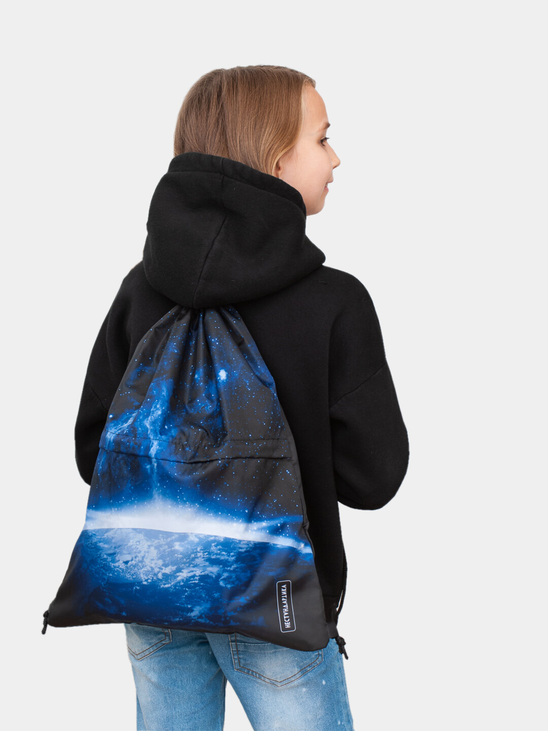 Купить Сумка мешок для сменной обуви и вещей с карманом Космос
