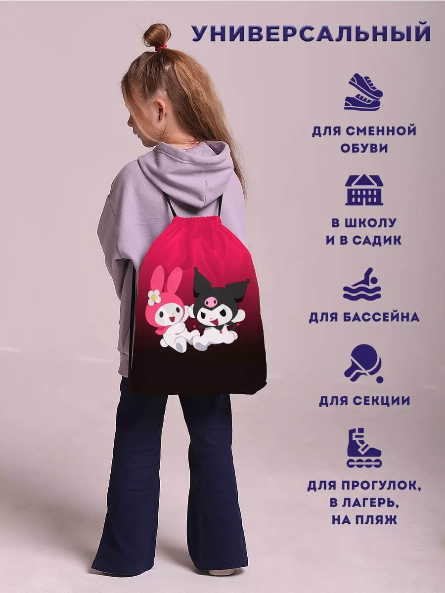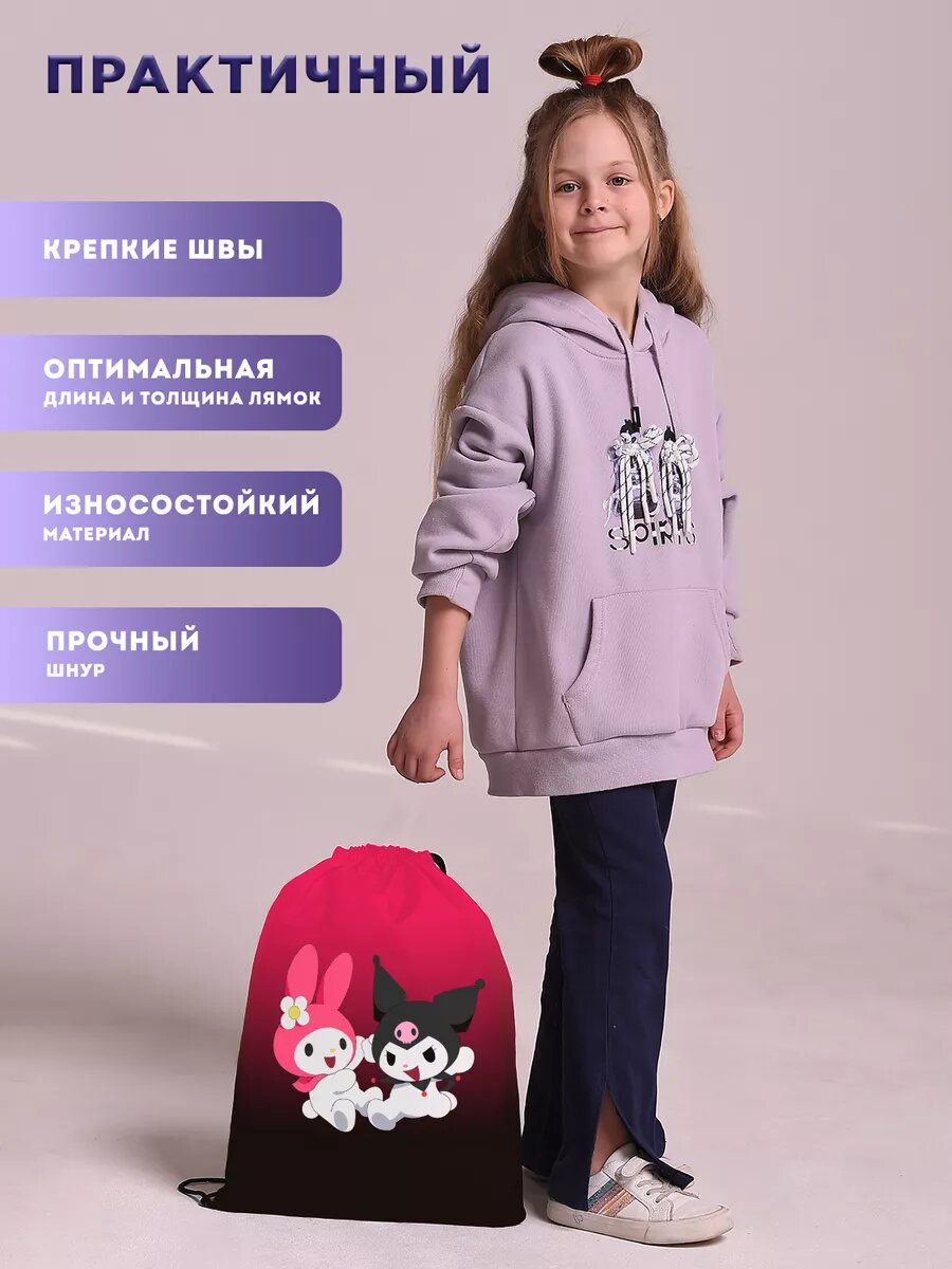 Мешок для обуви сменки для девочек Куроми hello kitty интересное: