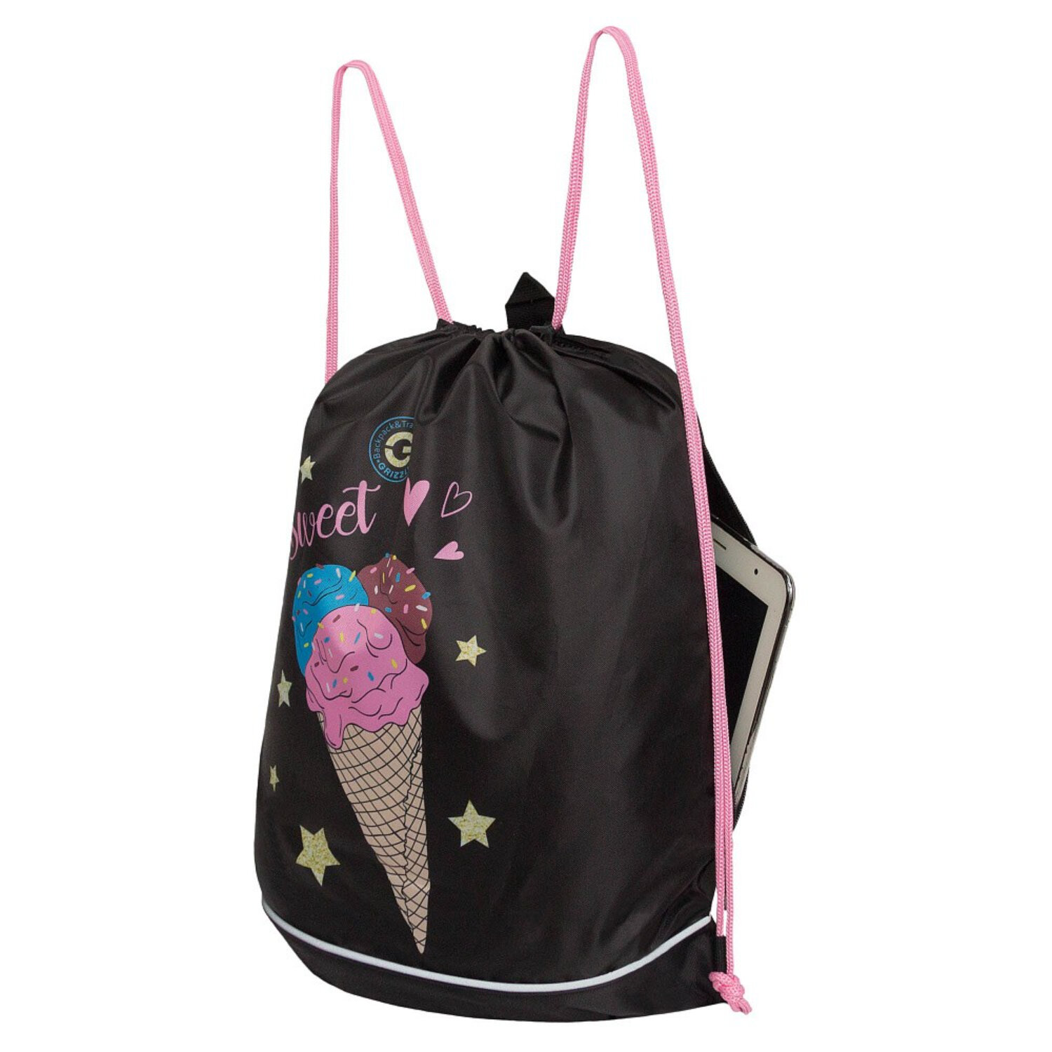 Мешок для обуви GRIZZLY с одним отделением, с боковым карманом, укрепленным дном, для школы, для девочки OM-40-2/2