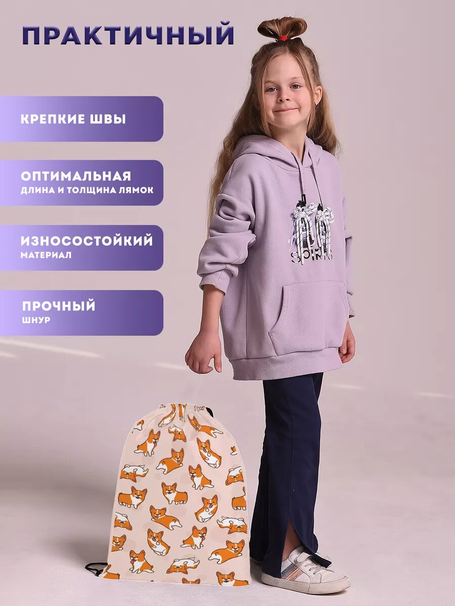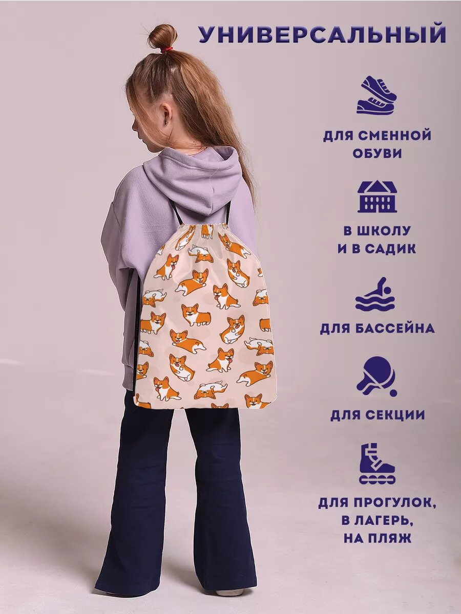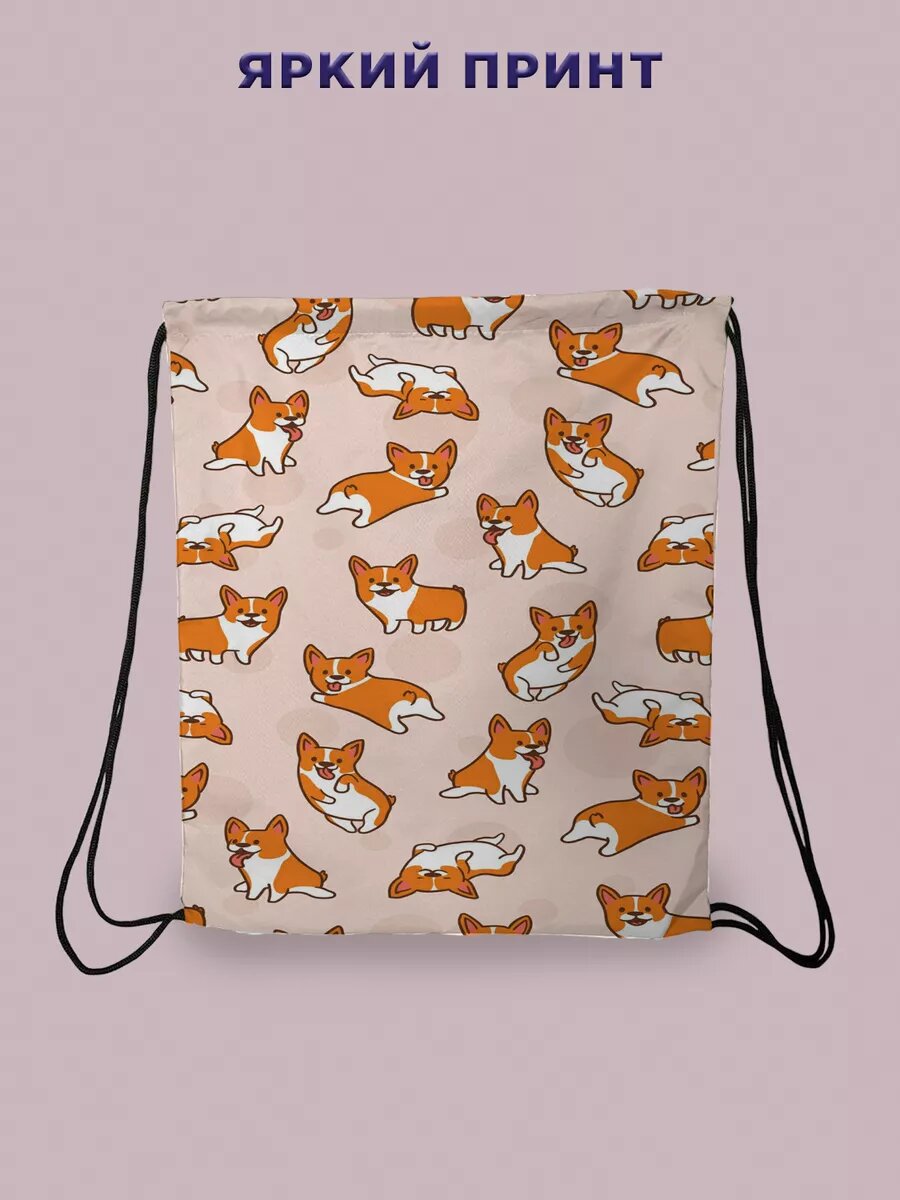 СохранитьМешок для обуви сменки большой в школу корги собачки интересное: