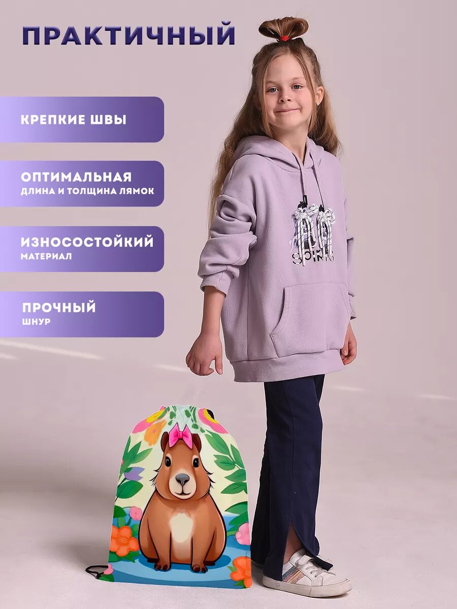 Ниже Вы можете прочитать отзывы на Мешок для обуви сменки большой в школу для девочек капибара, ознакомится с подробными характеристиками, посмотреть интересные обзоры и фотографии на Мешок для обуви сменки большой в школу для девочек капибара.