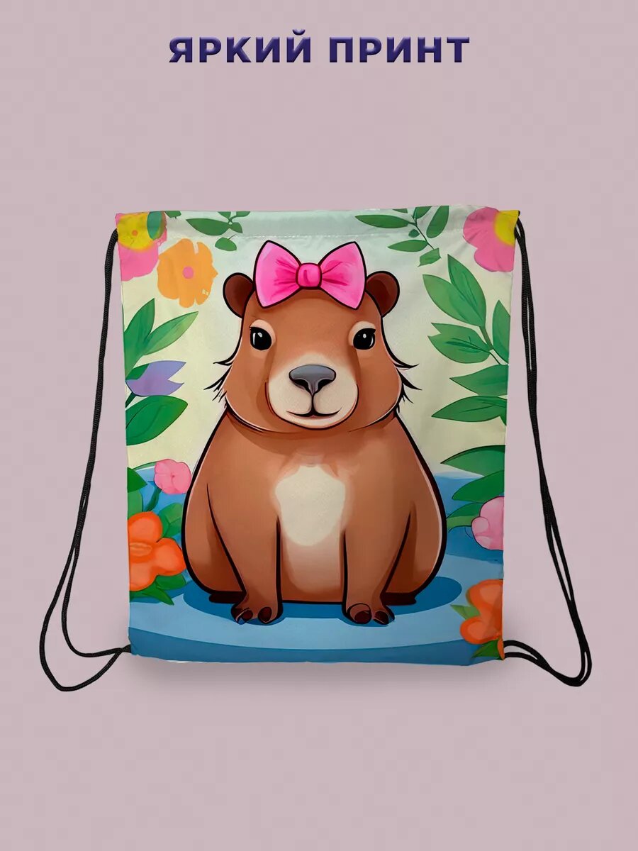 СохранитьМешок для обуви сменки большой в школу для девочек капибара интересное: