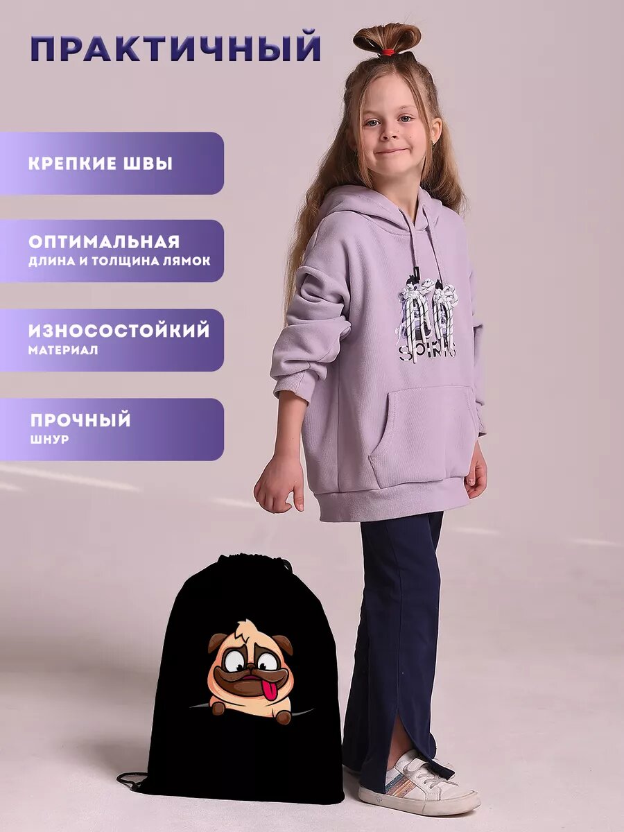 Купить Мешок для обуви сменки большой для детей собаки мопс