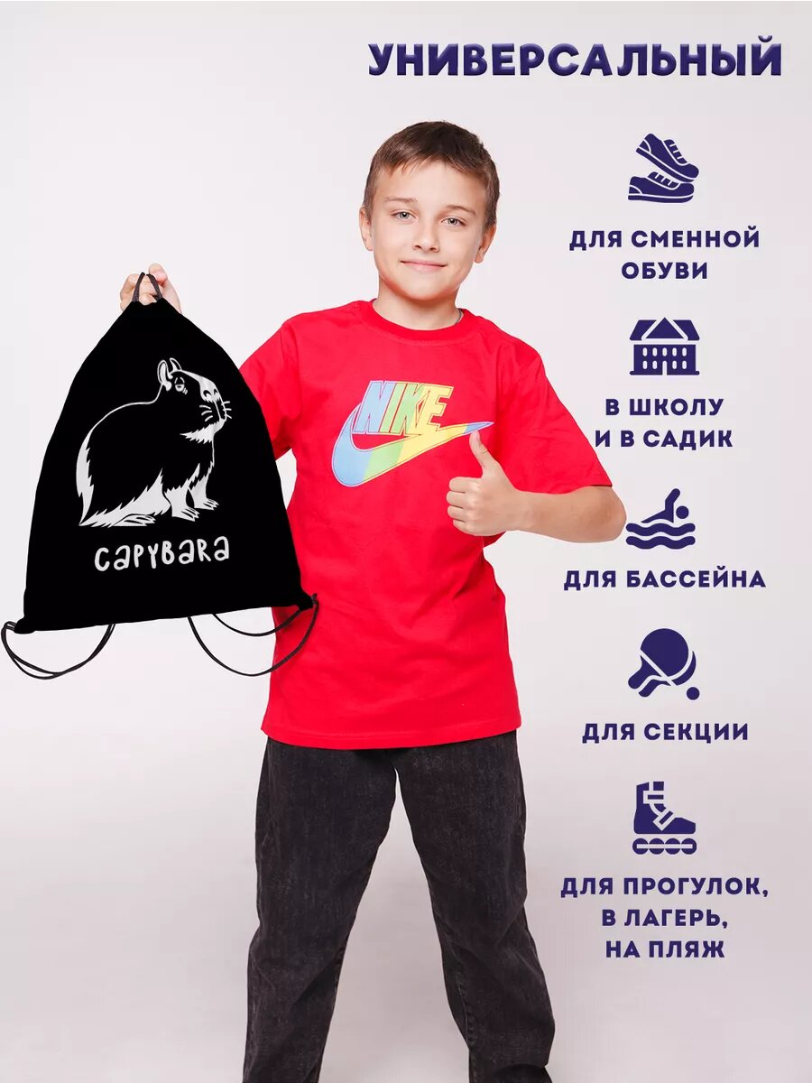 Мешок для обуви сменки большой для детей капибара kapibara интересное: