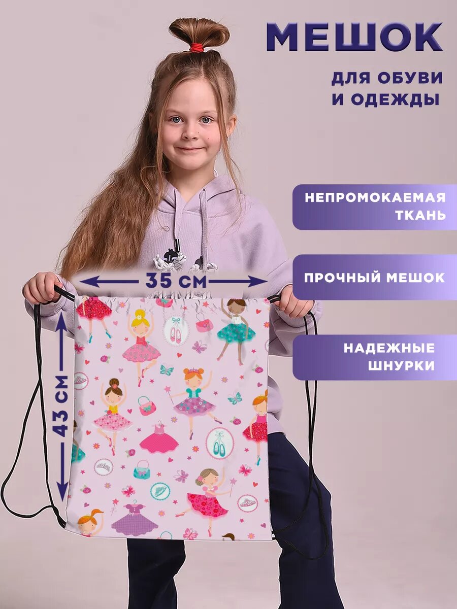 СохранитьМешок для обуви сменки большой в школу балерины интересное: