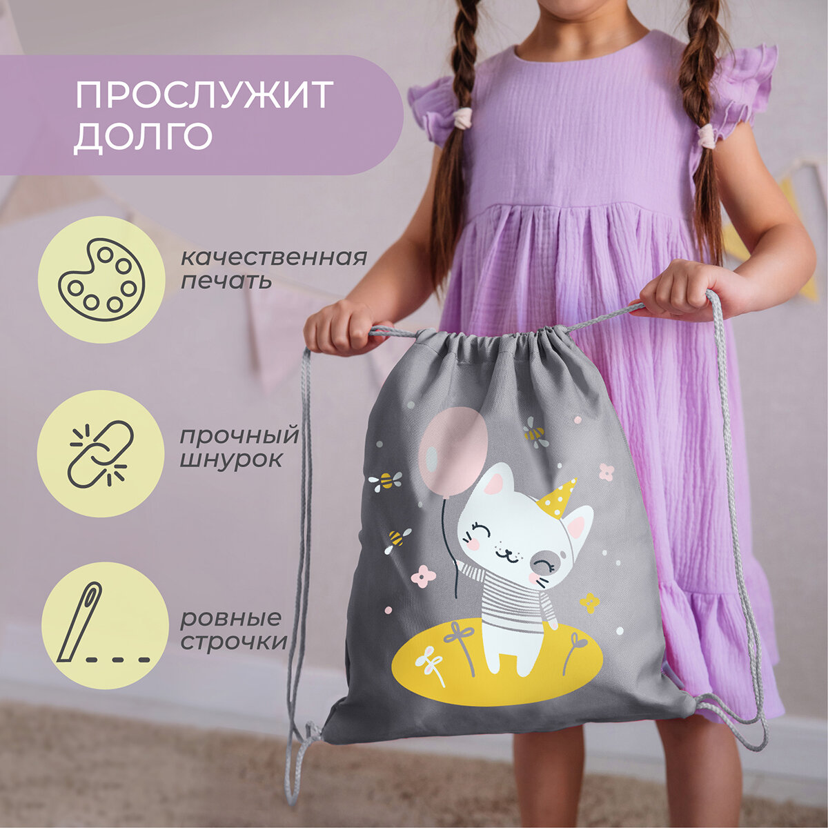 СохранитьМешок для сменной обуви с принтом котик интересное: