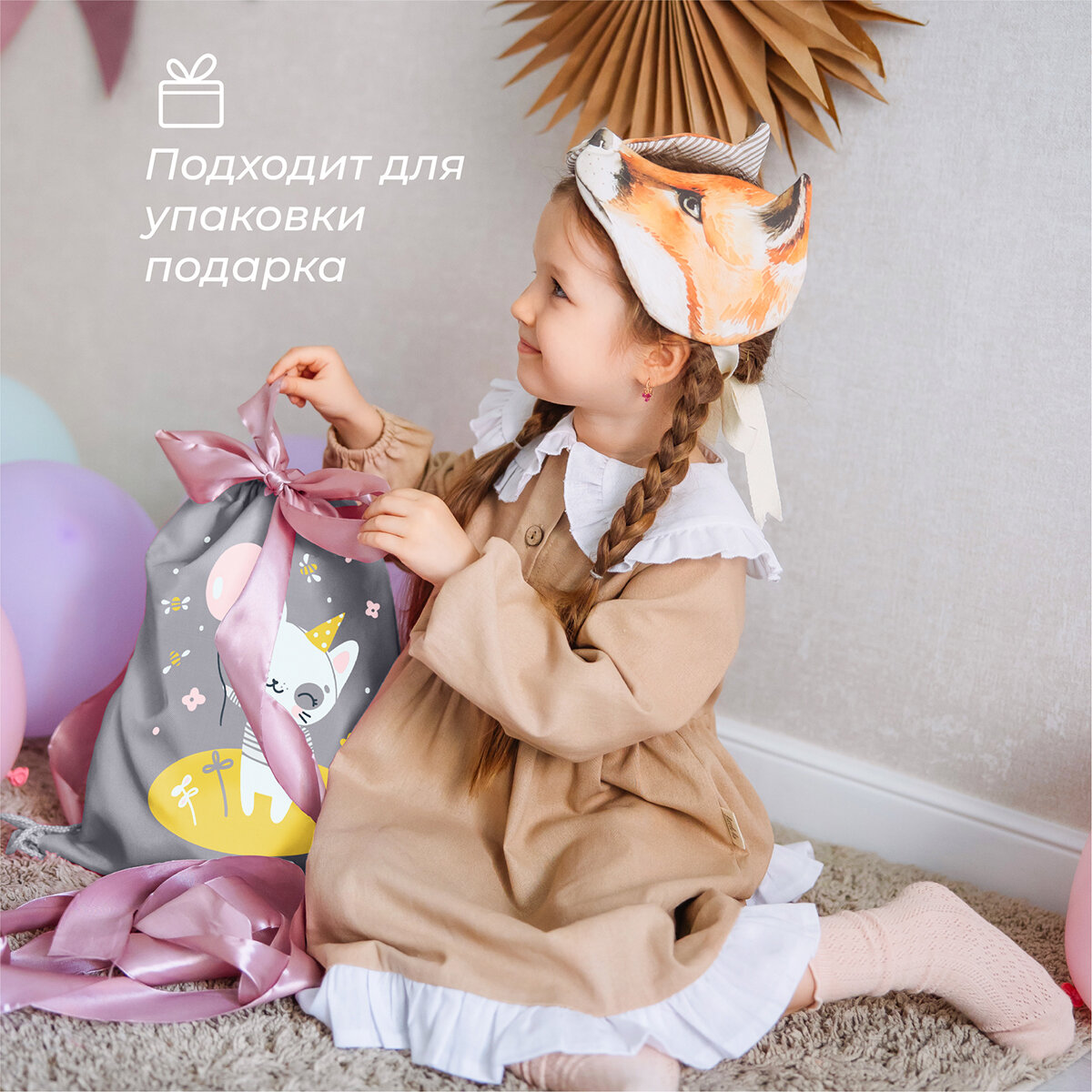 Мешок для сменной обуви с принтом лисенок