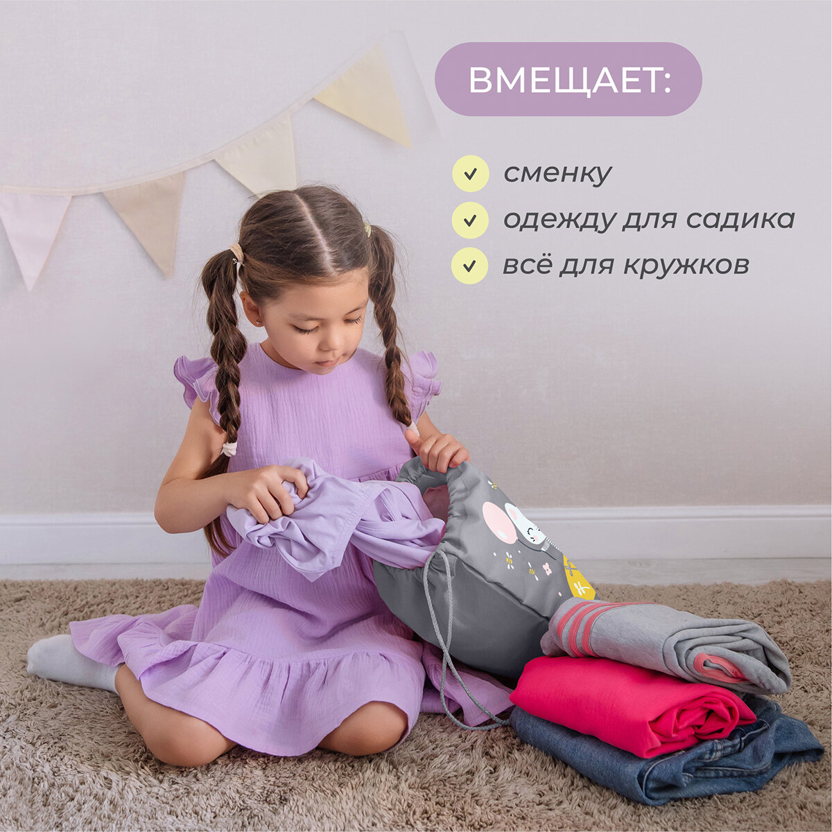 Мешок для сменной обуви с принтом зайка