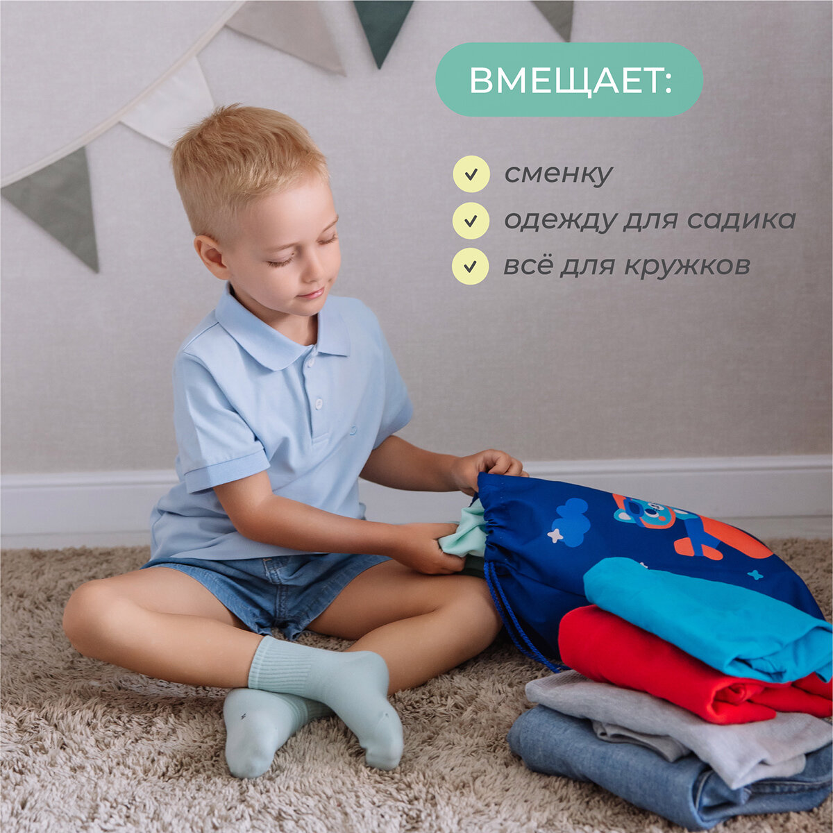 СохранитьМешок для сменной обуви с принтом пилот интересное: