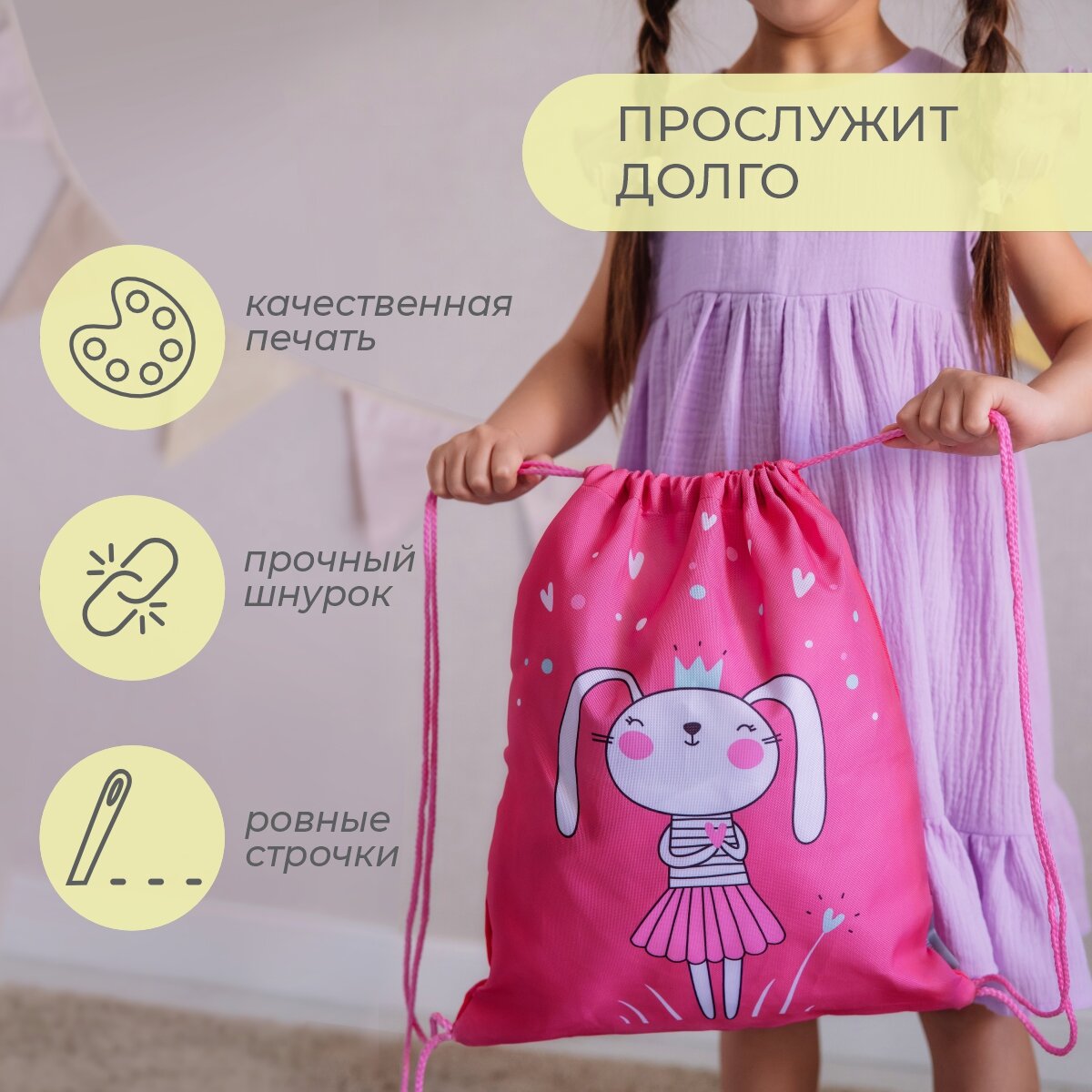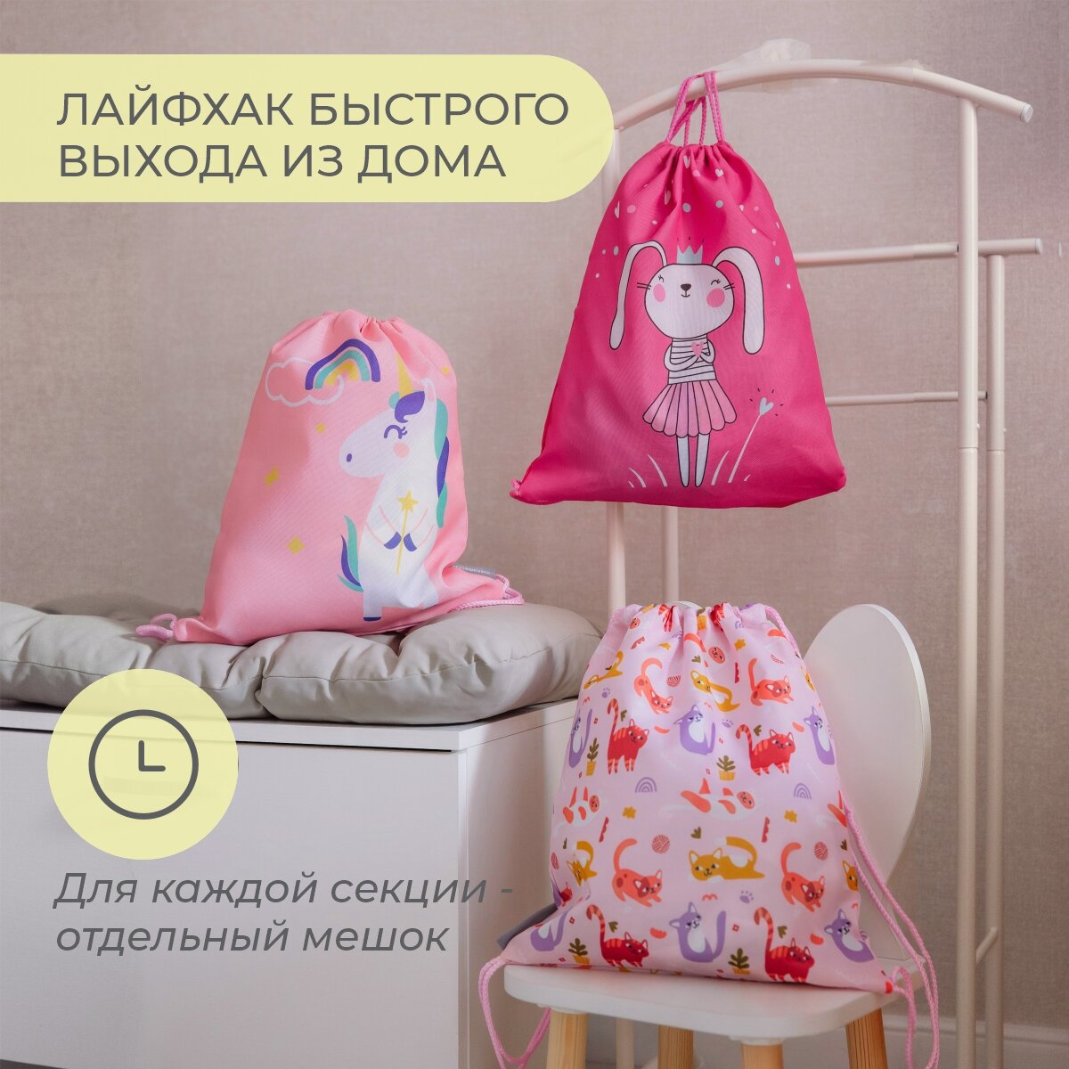 СохранитьМешок для сменной обуви с принтом зайка интересное: