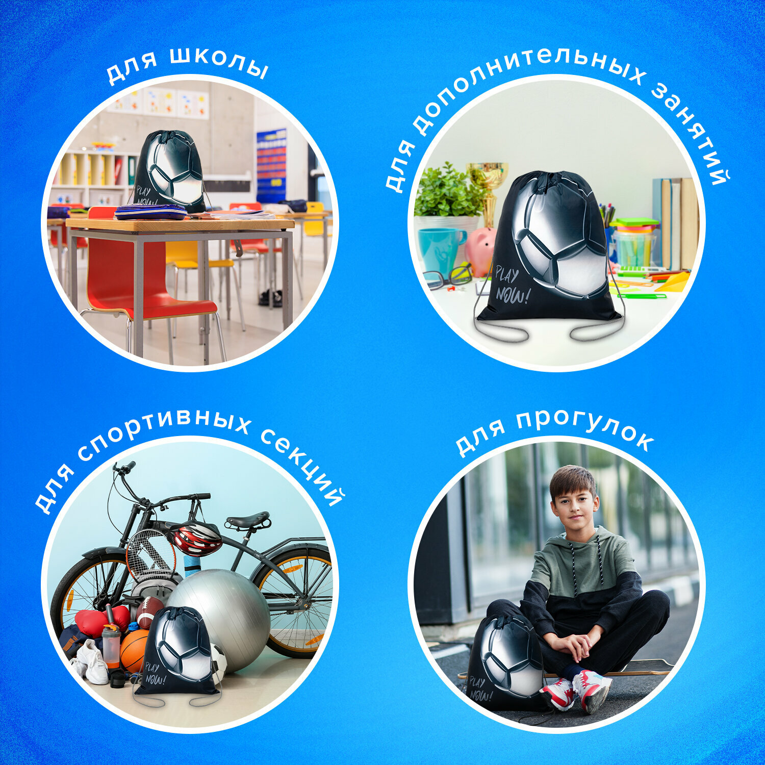 СохранитьМешок для обуви для мальчика, сумка для сменки в школу, чехол детский на футбол плотный с петлей, 42х34 см, Brauberg Kids Score ball, 272415 интересное:
