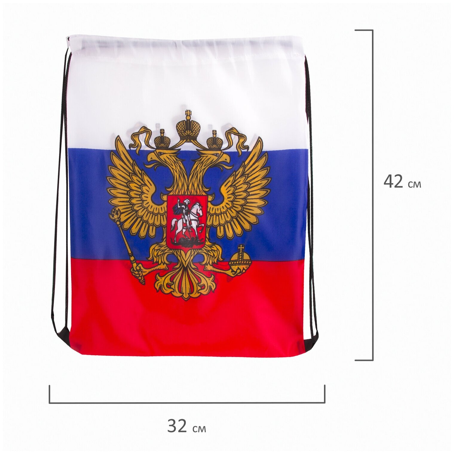 Сумка/мешок/рюкзак для сменной обуви на завязках Триколор РФ флаг России с гербом, 32х42 см, BRAUBERG/STAFF, 228328 интересное: