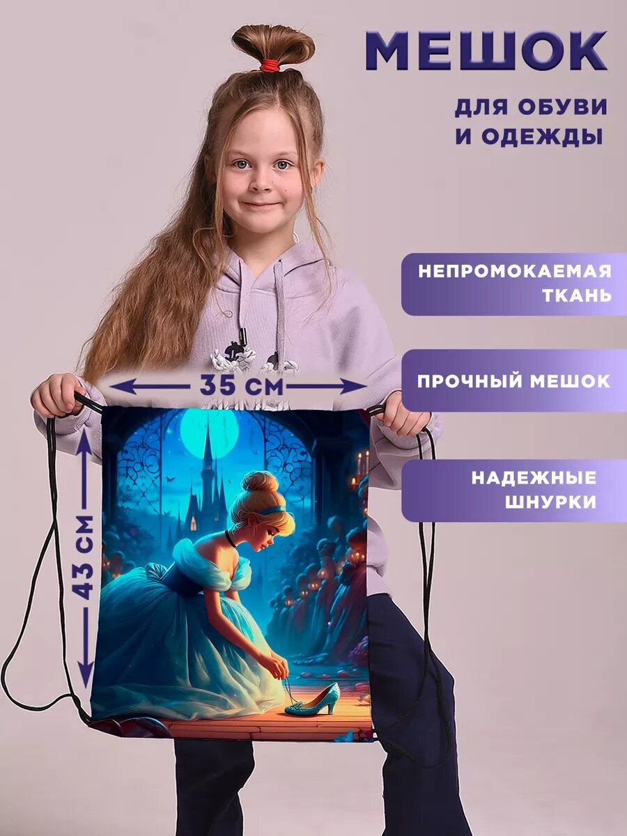 Мешок для обуви сменки большой в школу Золушка интересное: