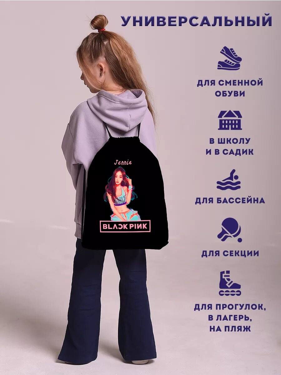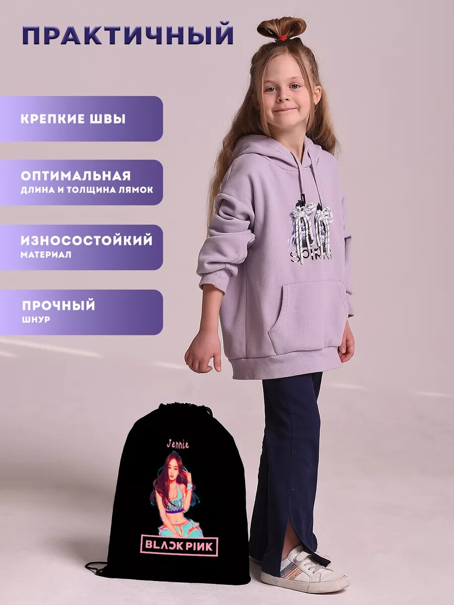 Мешок для обуви сменки большой BlackPink Блэк Пинк Jennie интересное: