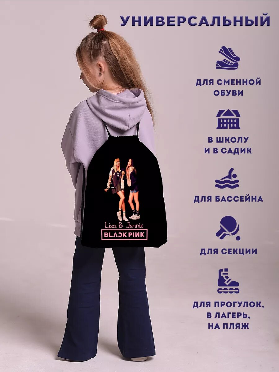 Мешок для обуви сменки BlackPink Блэк Пинк Lisa & Jennie интересное: