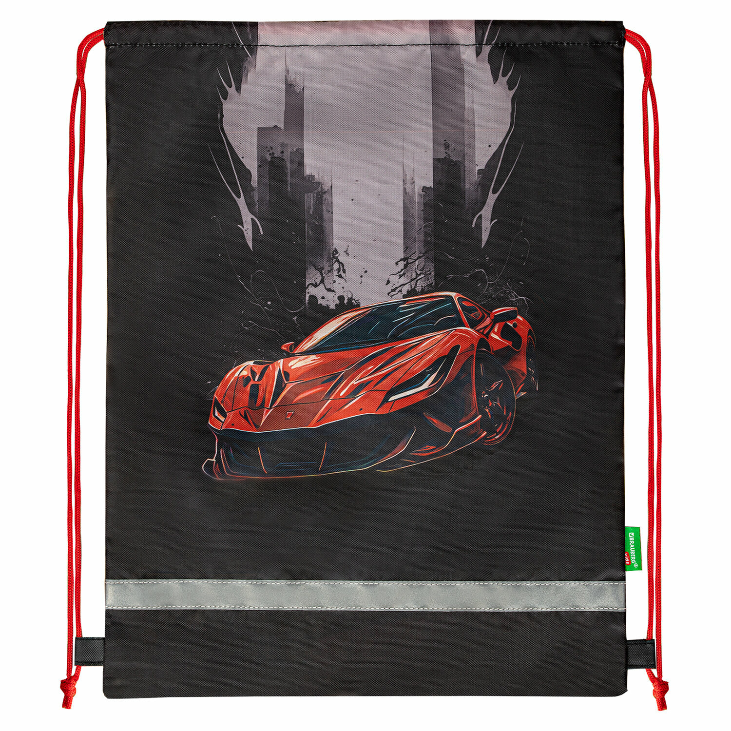 Купить Мешок для обуви Brauberg Kids, светоотражающая полоса, 46х36 см, Red car, 272392