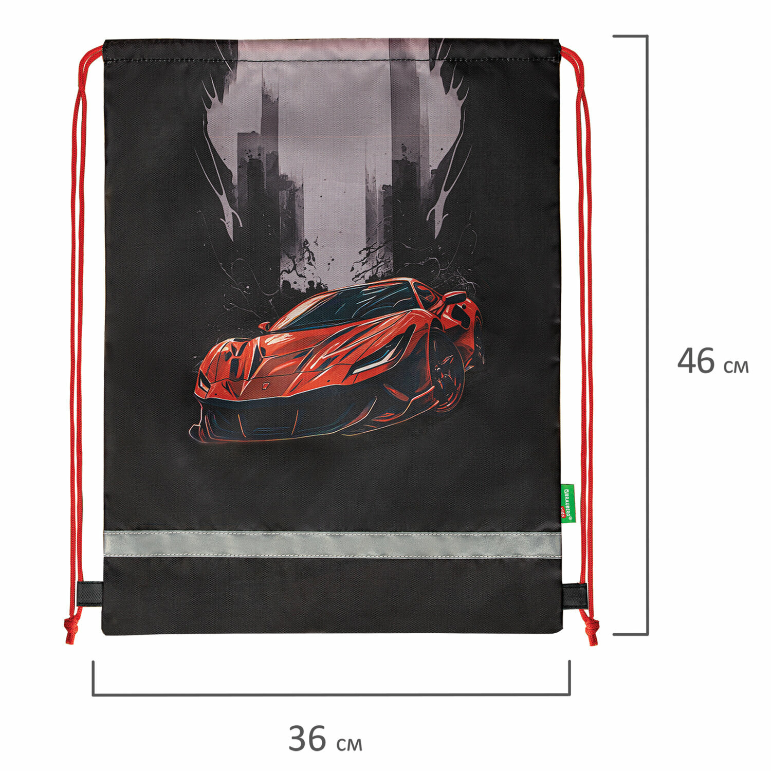 Мешок для обуви Brauberg Kids, светоотражающая полоса, 46х36 см, Red car, 272392 интересное: