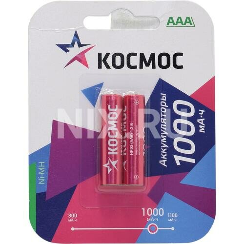 Аккумулятор Космос AAA, HR03 1000 mAh, NI-MH, 2 шт