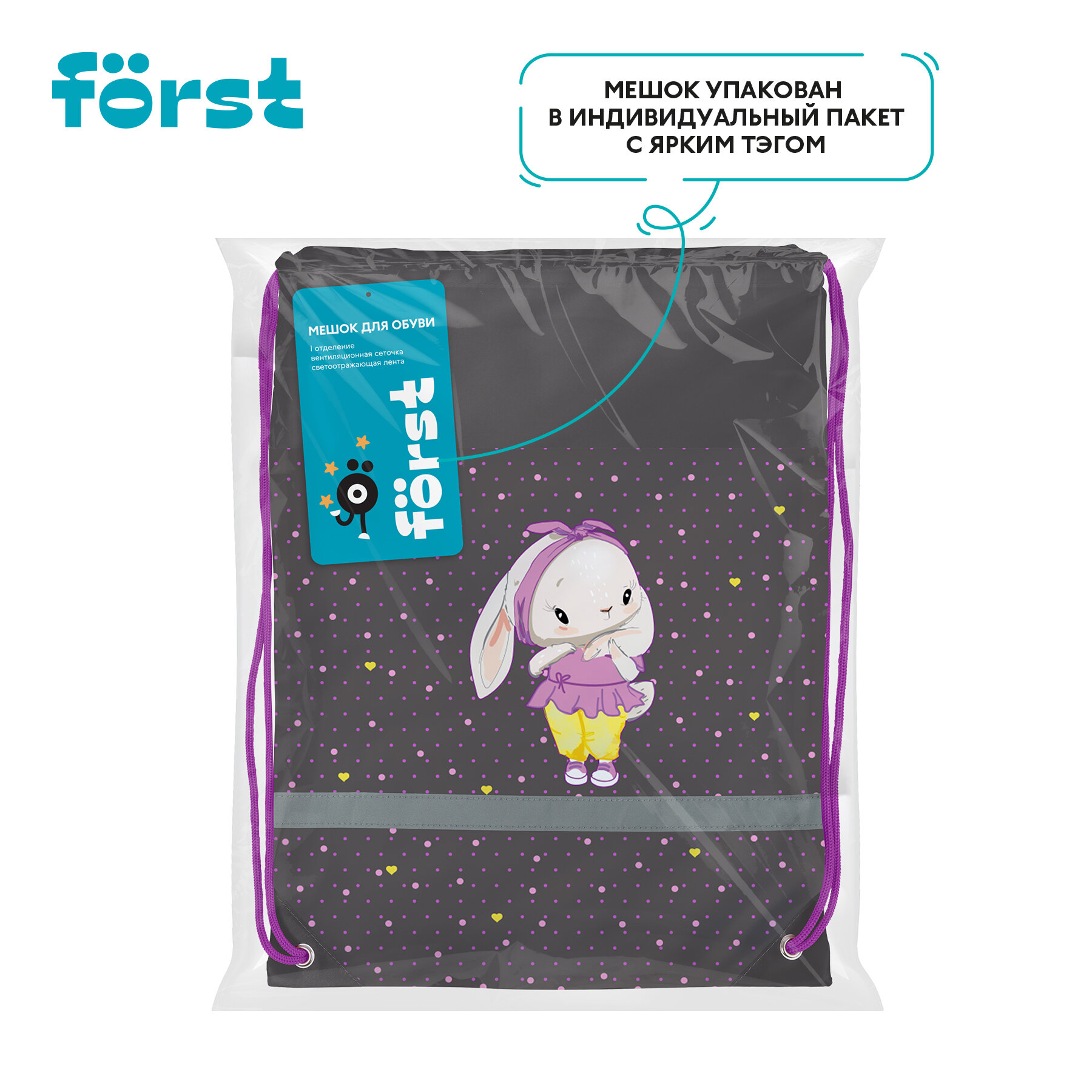 Мешок для обуви 1 отделение Först "Grey bunny", 360*460мм, вентиляционная сеточка, светоотражающая полоса интересное: