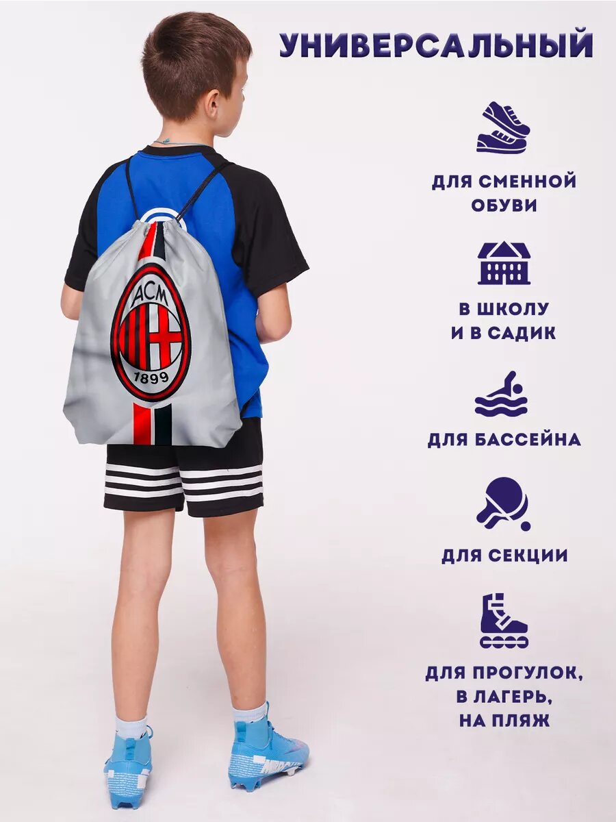 СохранитьМешок для обуви сменки большой для мальчика футбол Милан интересное: