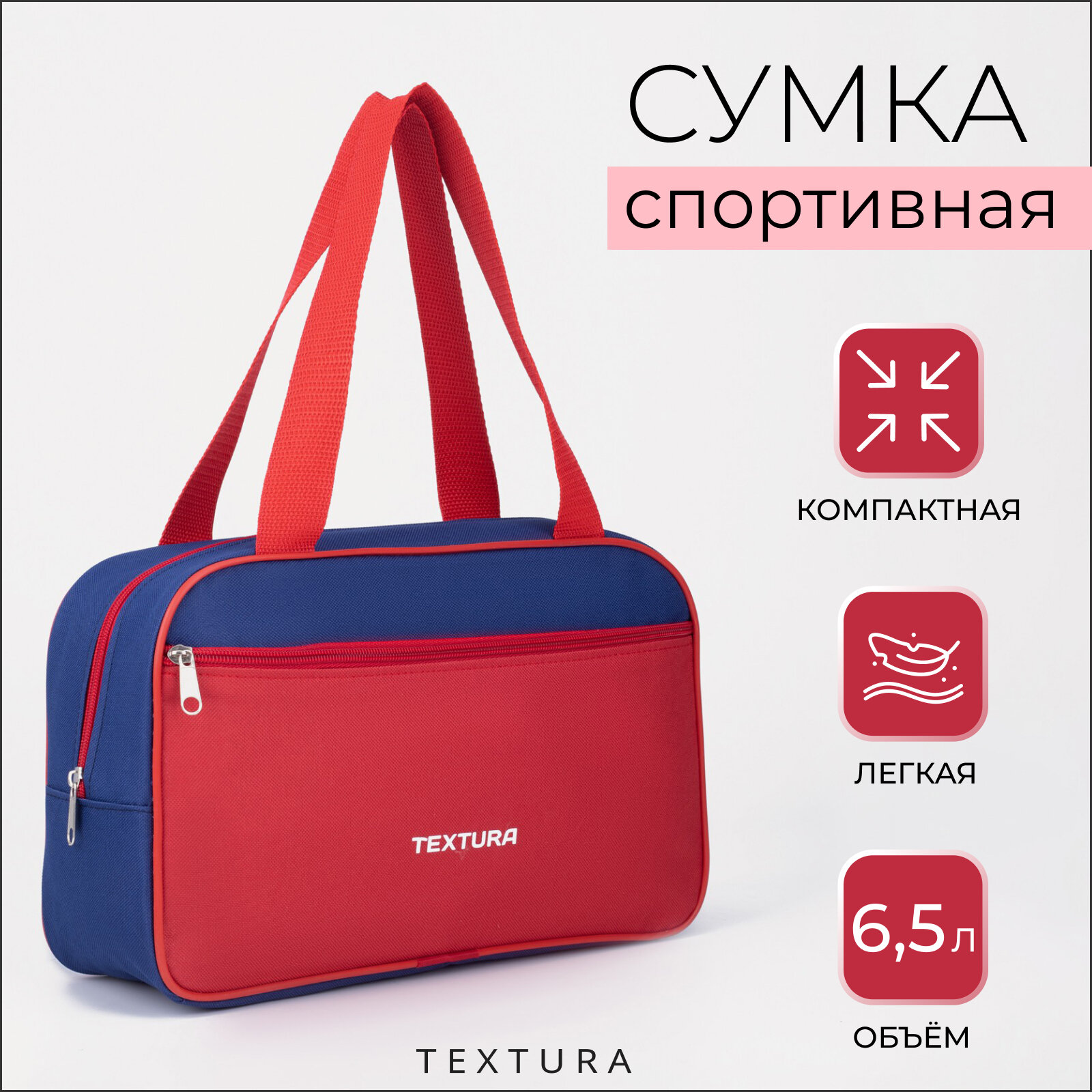 Сумка для обуви на молнии, наружный карман, TEXTURA, цвет синий/красный интересное: