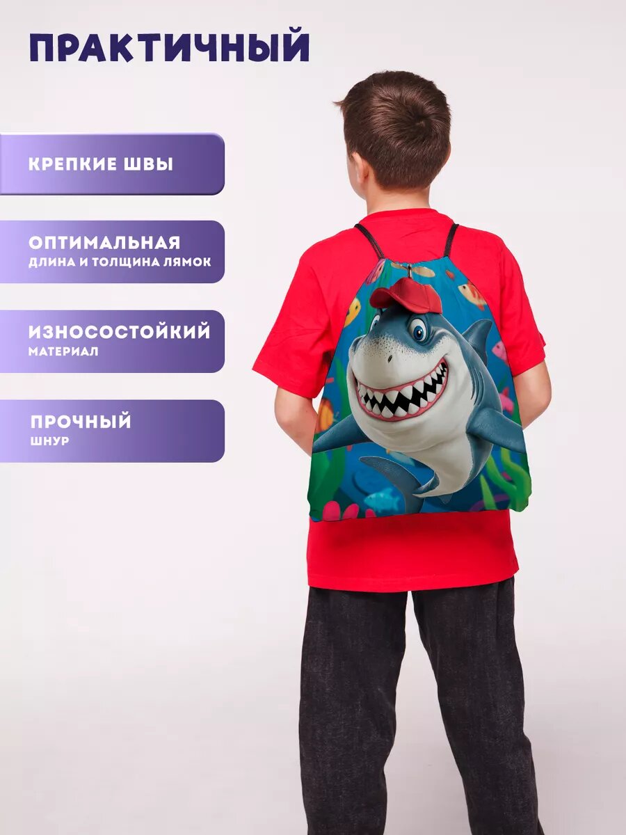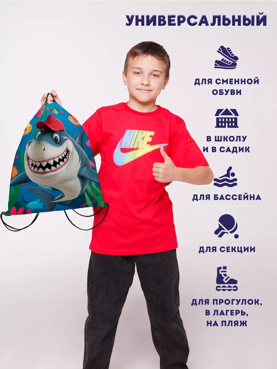 Мешок для обуви сменки большой в школу акулы для мальчика интересное: