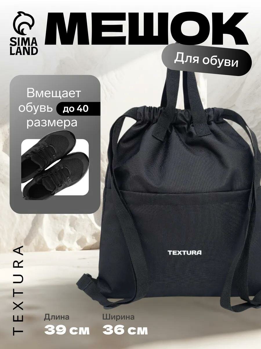 Мешок-сумка для обуви на стяжке TEXTURA, наружный карман, цвет чёрный интересное: