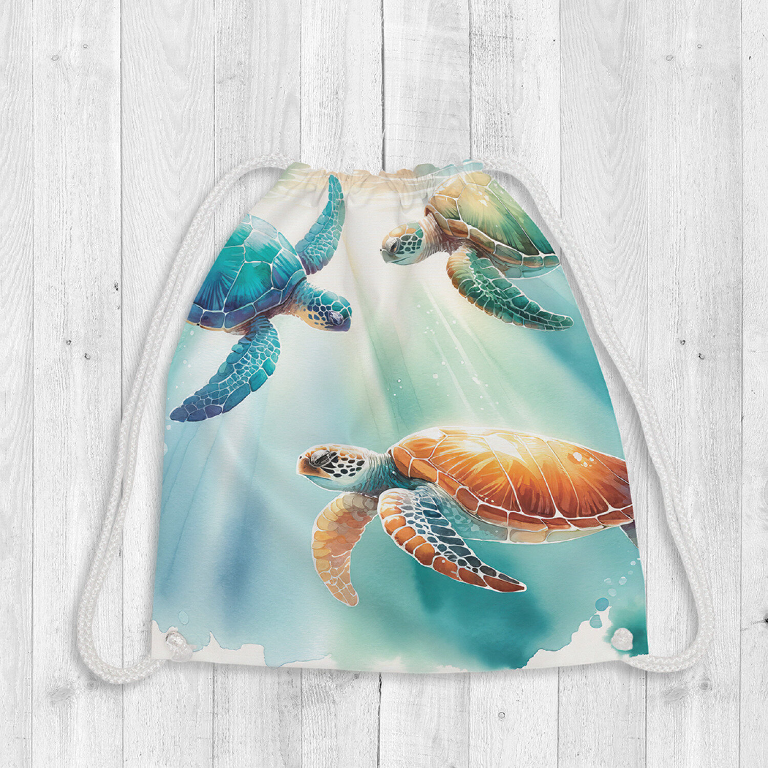 Купить Сумка рюкзак-мешок для обуви и вещей с принтом "Черепахи в лучах", JoyArty, 38x40см