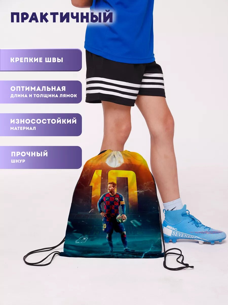 Мешок для обуви сменки большой в школу футбол Месси Messi интересное: