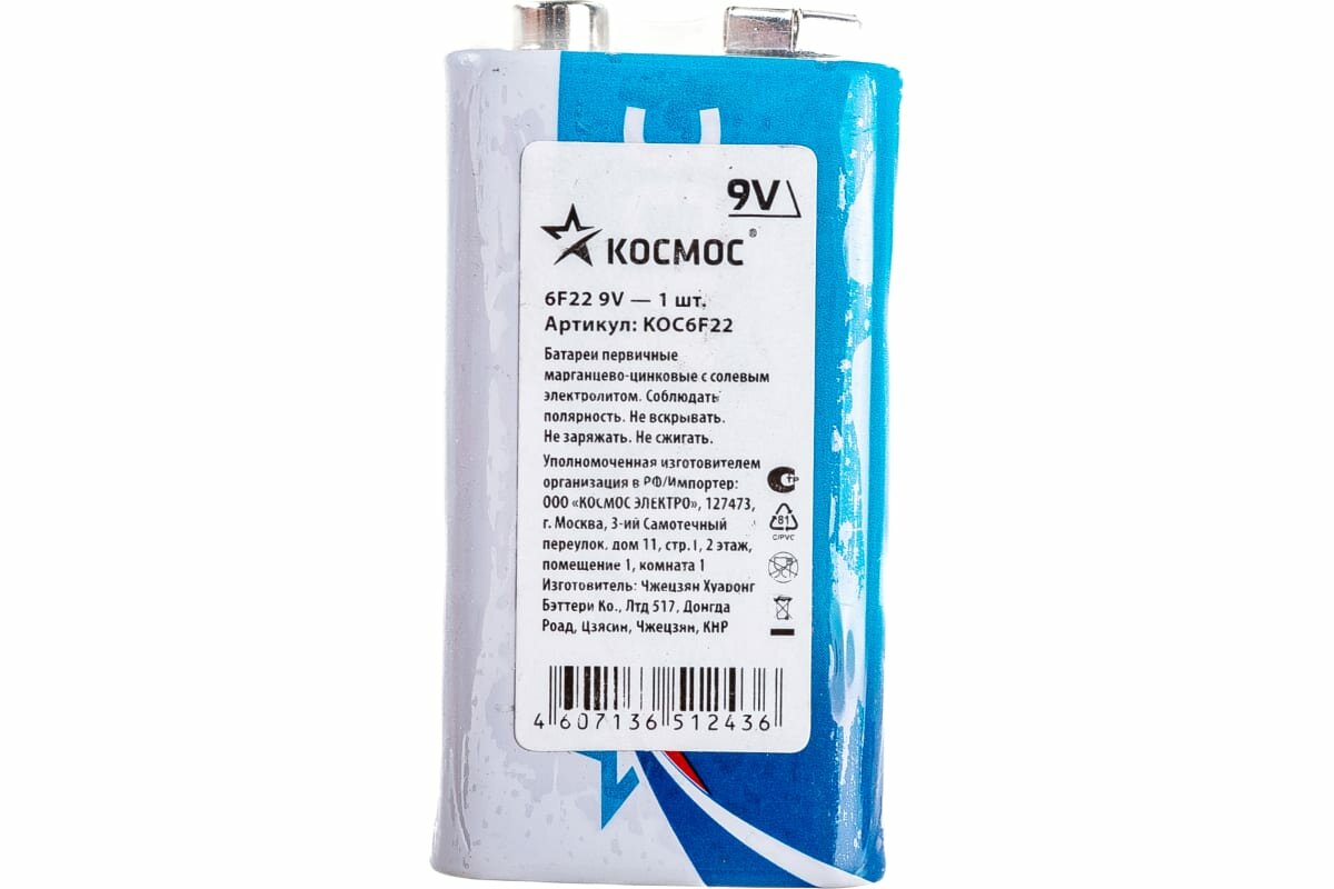 Батарейка КОСМОС 6F22 (крона), в упаковке: 1 шт.