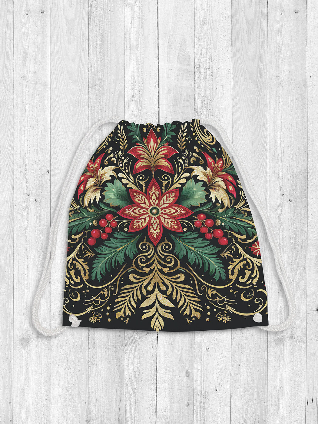 Купить Сумка рюкзак-мешок для обуви и вещей с принтом "Узорчатая композиция", 38x40см , JoyArty, серия Новый год и Рождество