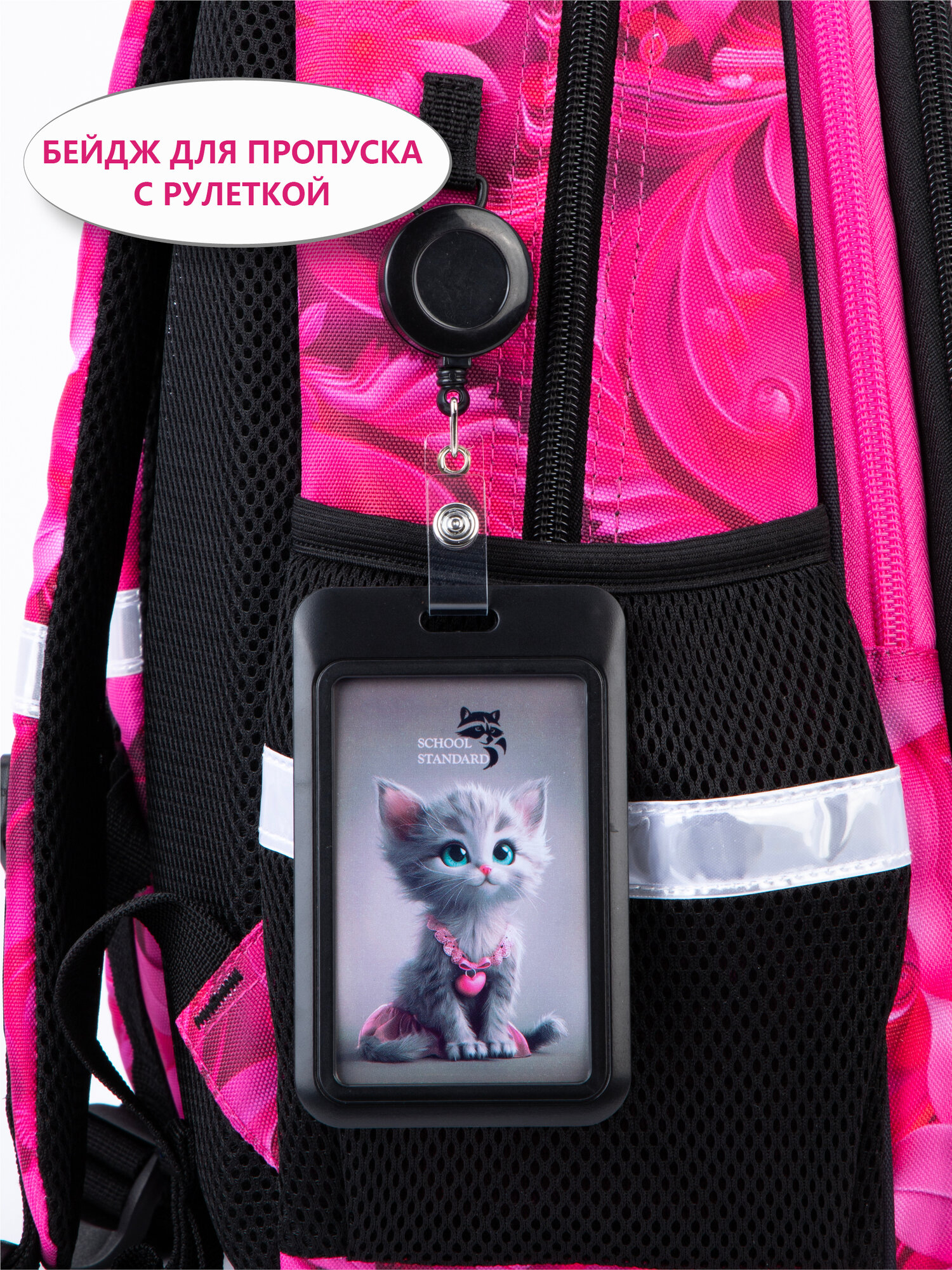 Рюкзак школьный для девочки 1-4 классов анатомическая спинка, набор 6 в 1 + брелок, School Standard (Скул Стандарт)