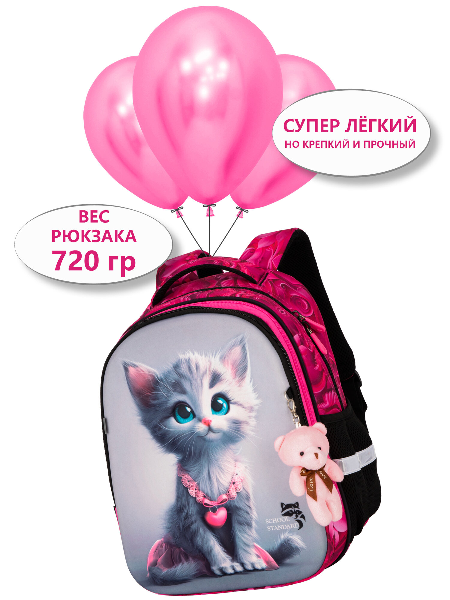 Рюкзак школьный для девочки начальной школы анатомическая спинка, 6 в 1 + брелок, School Standard (Скул Стандарт)