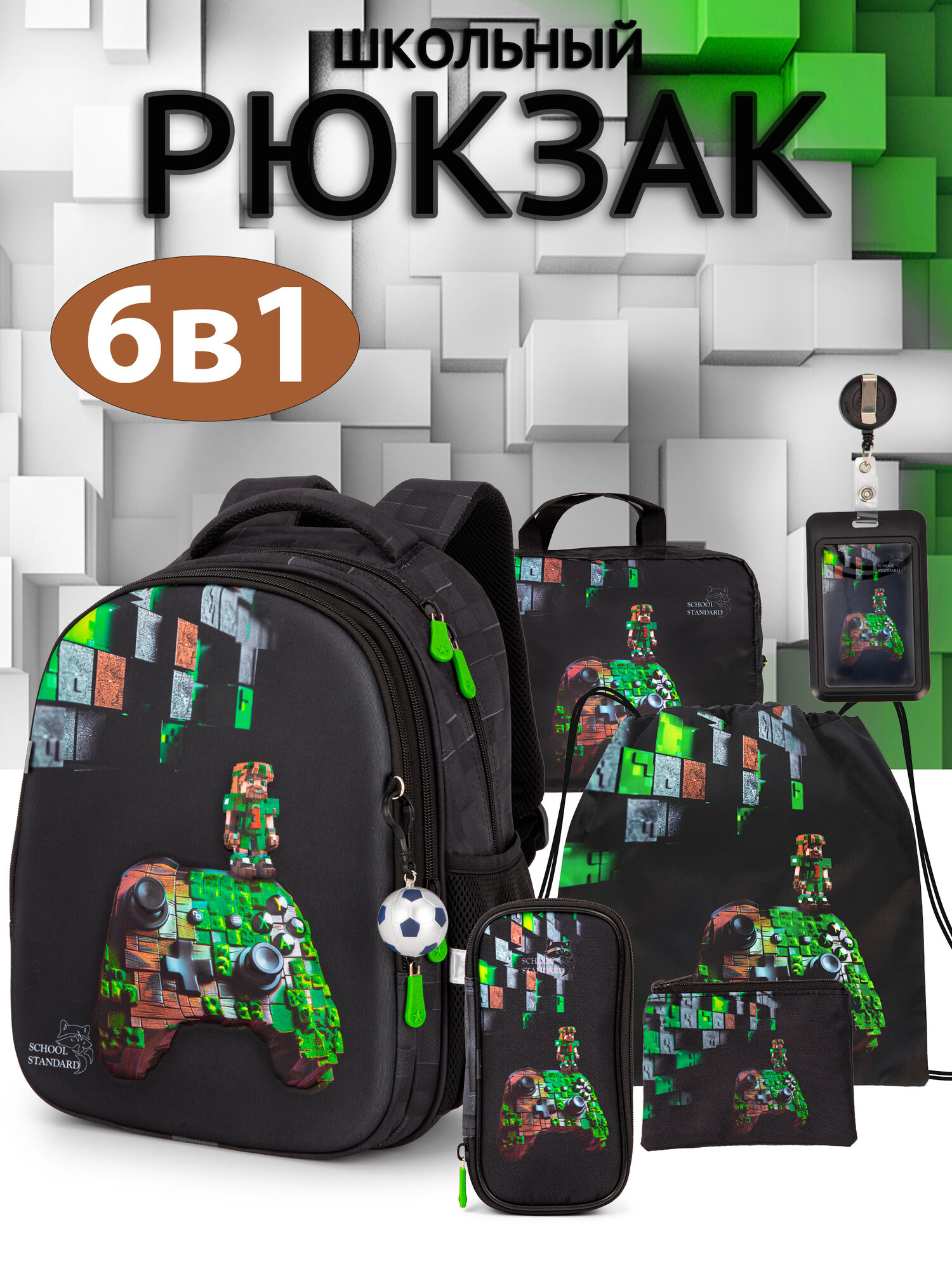 Рюкзак школьный для мальчика начальной школы анатомическая спинка, набор 6 в 1 + брелок, School Standard (Скул Стандарт)